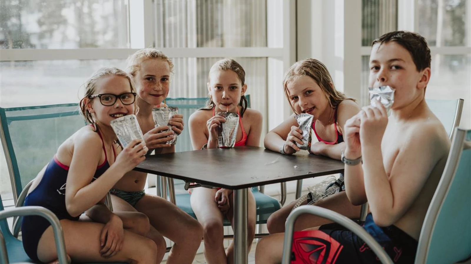 Maten hentes i Cafe Aqua av hver enkelt deltaker til booket tid, og bordet på badeterrassen disponeres en time.
